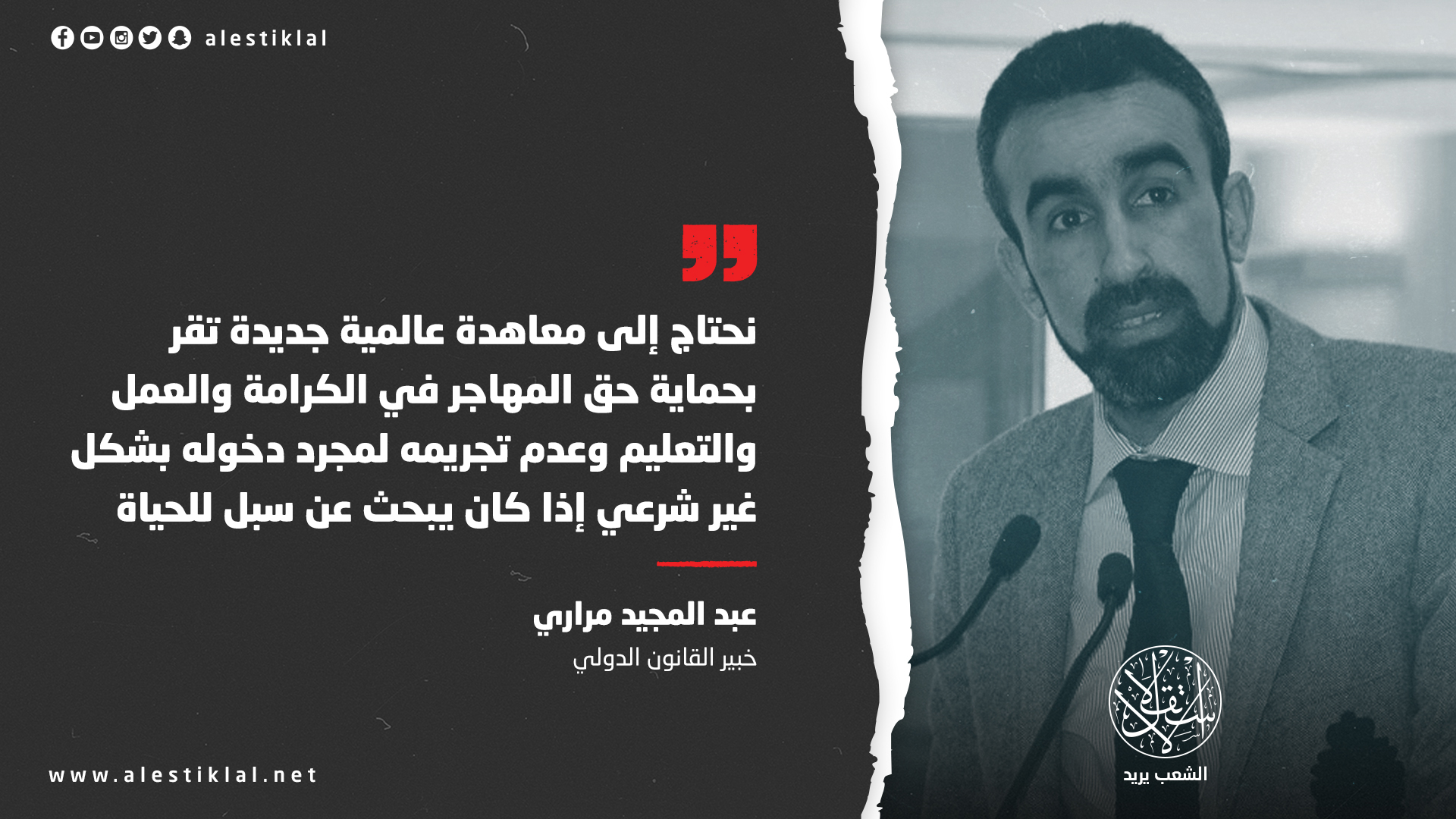 وأوضح مراري أن "العالم ما زال يحتاج إلى مزيد من التشريعات لحماية اللاجئين والمهاجرين غير النظاميين، خاصة أن كثيرا من حكومات البلاد الغربية هي سبب رئيس في هجرة هؤلاء من بلادهم بعد أن ساعدت على اضطهادهم بسبب ممارساتها الاستعمارية القديمة ولأسباب أخرى".