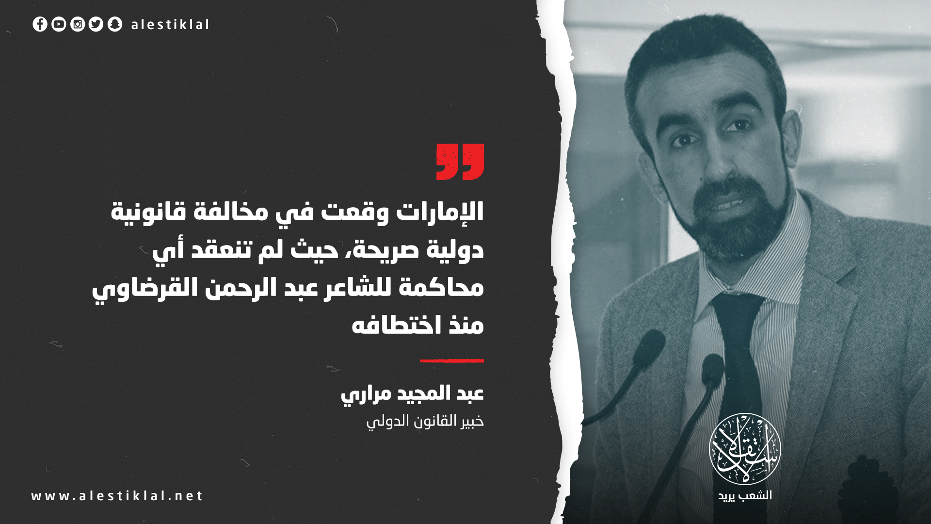 الإمارات وقعت في مخالفة قانونية دولية صريحة؛ حيث لم تنعقد أي محاكمة للشاعر عبد الرحمن منذ اختطافه.