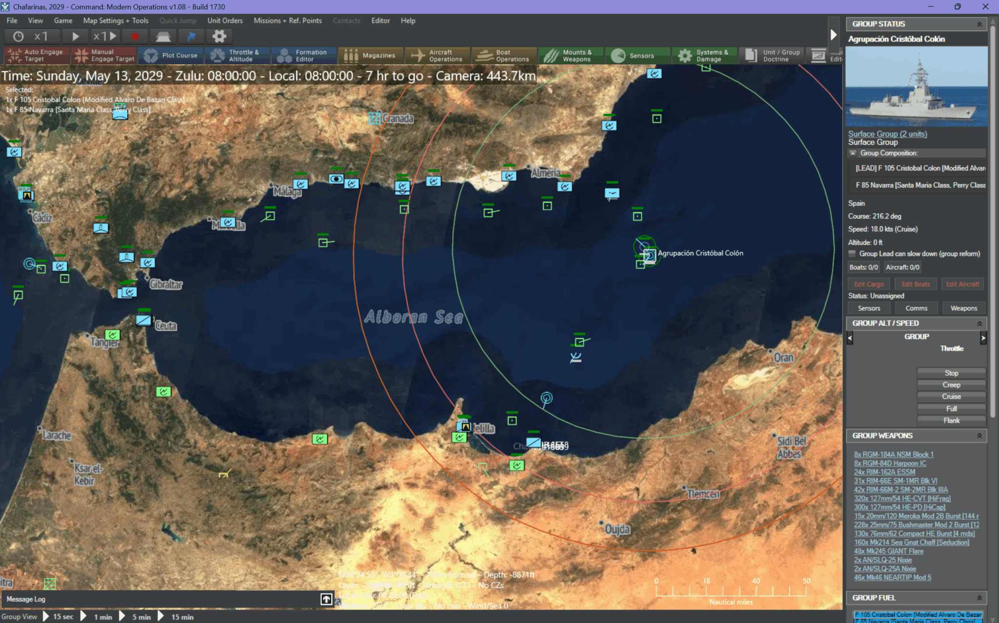 وفي "شفارين 2029" تنشر القوات المغربية فرقاطات فريم وسيغما، وصواريخ باراك 8 وهاروب، بينما تُفعّل إسبانيا غواصة إسحاق بيرال وعدة فرقاطات إف -100، فيما يجب على اللاعب ضمان إمداد الجزر في أقل من سبع ساعات دون إثارة حرب مفتوحة.
