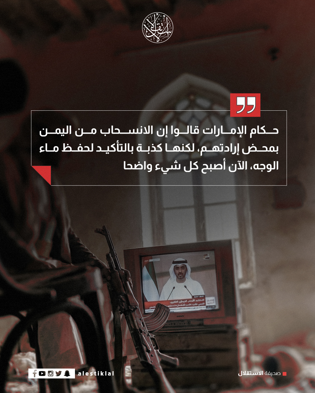 هل كان انسحاب الإمارات من اليمن "بمحض إرادتها"؟ (إنفوجراف)إنفوجرافأيضــــــــــــامن دون رصاصة واحدة.. كيف يستفيد الحوثي من صراعات خصومه في حضرموت؟رغم تصريحات الانسحاب.. هل تُخفي أبو ظبي حقيقة وجودها العسكري في اليمن؟محام وناشط مقدسي: عسكرة القدس تنسف حلم دولة فلسطين (إنفوجراف)نيكولاس مادورو.. الرئيس المختطف (إنفوجراف)خلاف الحلفاء في اليمن.. أين تقف واشنطن وتل أبيب من الصدام السعودي–الإماراتي؟انقسام يلوح بالأفق.. ما مصير "المجلس الانتقالي" بعد مؤتمر الرياض المرتقب؟منذ ٥ أيامإنفوجرافمسار زمني.. ماذا يحدث في إيران؟ (إنفوجراف)محام وناشط مقدسي: عسكرة القدس تنسف حلم دولة فلسطين (إنفوجراف)هل كان انسحاب الإمارات من اليمن "بمحض إرادتها"؟ (إنفوجراف)نيكولاس مادورو.. الرئيس المختطف (إنفوجراف)اليمنانقسام يلوح بالأفق.. ما مصير "المجلس الانتقالي" بعد مؤتمر الرياض المرتقب؟بيان غامض وواقع متغير.. المجلس الانتقالي باليمن أمام اختبار ما بعد الإماراتأسلحة في مقرات الإغاثة بحضرموت.. كيف استُخدم الهلال الأحمر الإماراتي كواجهة عسكرية؟تهريب تحت النار.. التحالف يفضح دور الإمارات في إخراج الزبيدي من اليمن