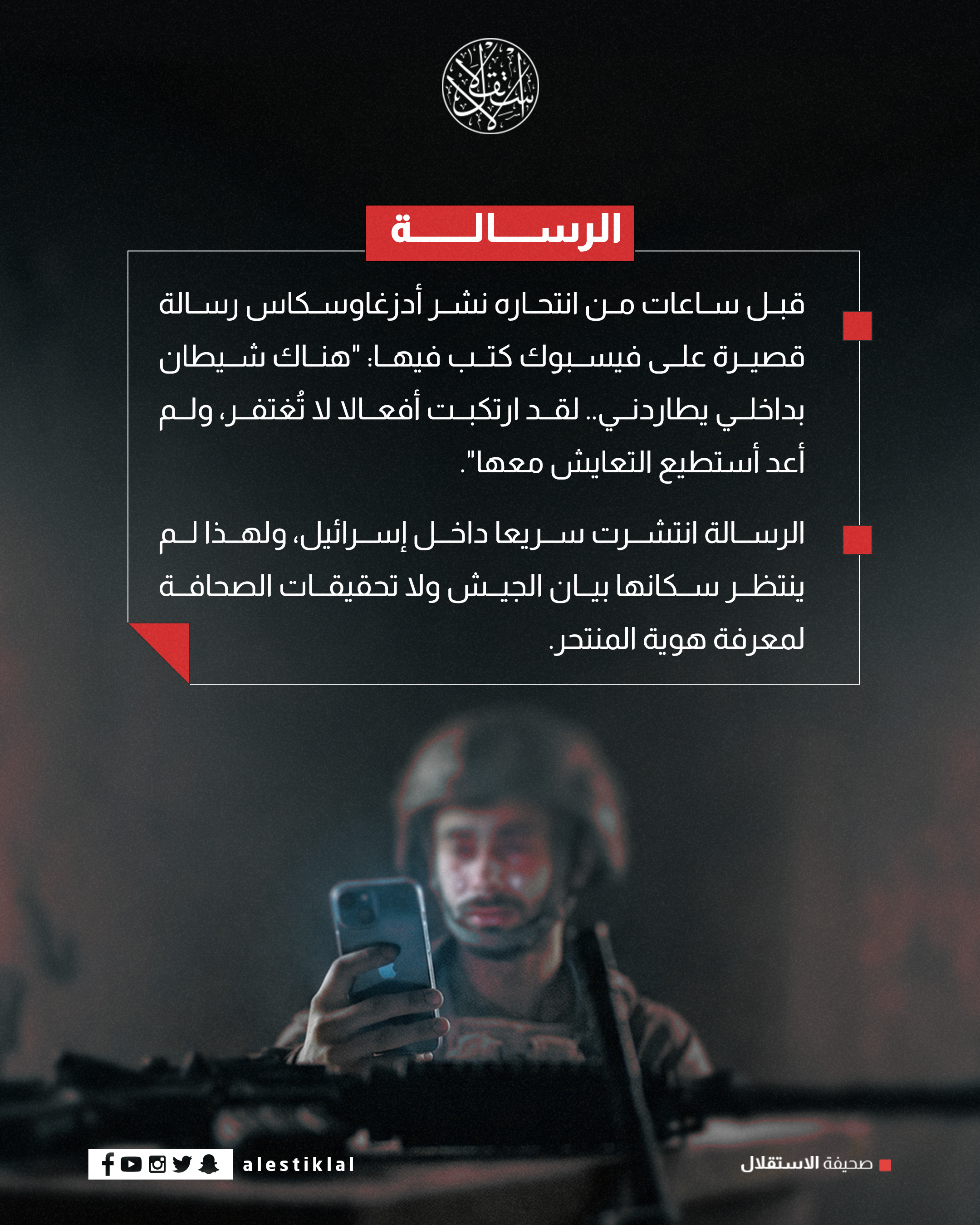"هناك شيطان بداخلي يطاردني".. قصة انتحار جندي إسرائيلي (إنفوجراف)إنفوجرافأيضــــــــــــامحام وناشط مقدسي: عسكرة القدس تنسف حلم دولة فلسطين (إنفوجراف)كيف ستتعامل غزة مع فقدان دعم 60% من مستشفياتها ومراكزها الصحية؟محام وناشط مقدسي: عسكرة القدس تنسف حلم دولة فلسطين (إنفوجراف)نيكولاس مادورو.. الرئيس المختطف (إنفوجراف)مسار زمني.. ماذا يحدث في إيران؟ (إنفوجراف)عملية اغتيال المقدم أحمد زمزم في غزة.. كيف نفذت؟ وما مصير شبكة العملاء؟منذ ٧ أيامإنفوجراففنزويلا.. بلد غني وشعب فقير (إنفوجراف)نيكولاس مادورو.. الرئيس المختطف (إنفوجراف)"هناك شيطان بداخلي يطاردني".. قصة انتحار جندي إسرائيلي (إنفوجراف)هل كان انسحاب الإمارات من اليمن "بمحض إرادتها"؟ (إنفوجراف)فلسطينمحام وناشط مقدسي: عسكرة القدس تنسف حلم دولة فلسطين (إنفوجراف)عملية اغتيال المقدم أحمد زمزم في غزة.. كيف نفذت؟ وما مصير شبكة العملاء؟"هناك شيطان بداخلي يطاردني".. قصة انتحار جندي إسرائيلي (إنفوجراف)كيف ستتعامل غزة مع فقدان دعم 60% من مستشفياتها ومراكزها الصحية؟