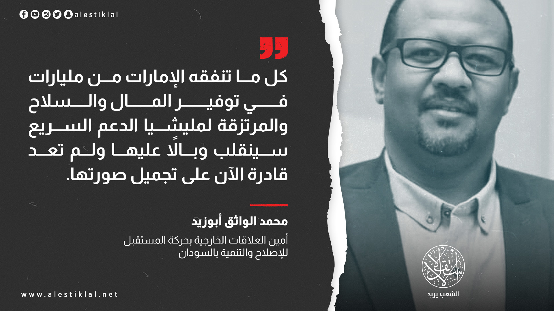 وأعتقد أن ما تنفقه الإمارات على تجميل صورتها وعلى هذه المليشيا سينقلب عليها وبالاً خاصة أنها سياسيًا تدعي أنها تحاول أن تقر حكمًا مدنيًا في السودان وديمقراطيًا، ولا يمكن لعاقل أن يتحدث مثل هذا الحديث، ومعلوم أنه لا يمكن أن تدعو إلى تطبيق ديمقراطية وعمل مدني من خلال دولة أصلا تفتقر إلى هذا الأمر.