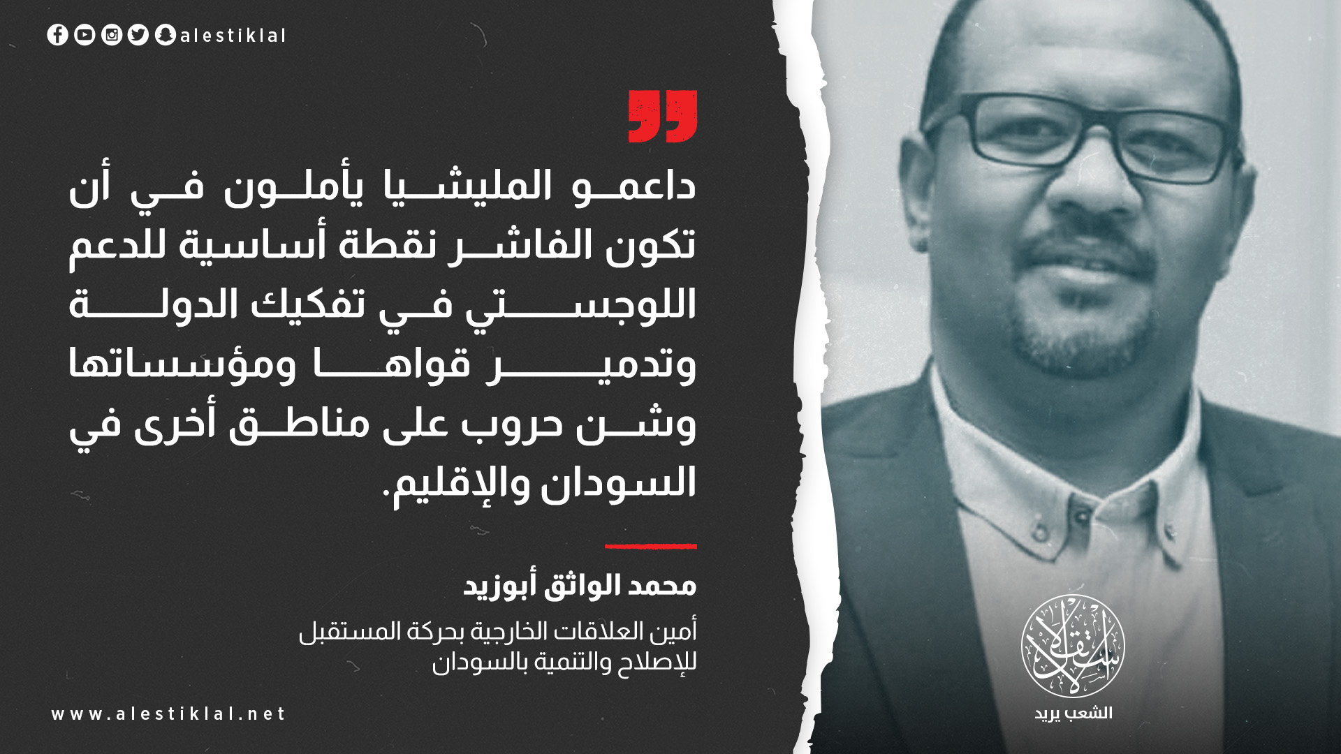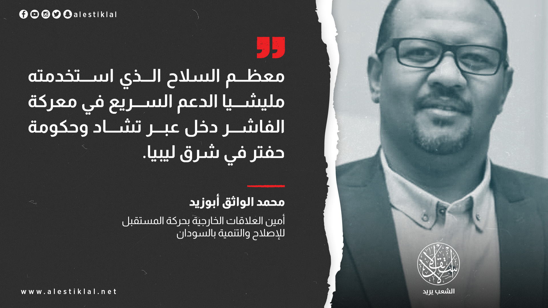 وأضاف أبو زيد في حوار مع “الاستقلال” أن داعمي المليشيا يأملون في أن تكون الفاشر نقطة أساسية للدعم اللوجستي في شن حروب على مناطق أخرى في السودان والإقليم، مشددا على أن مصر وليبيا والجزائر ليست بمنأى عن ذلك.
