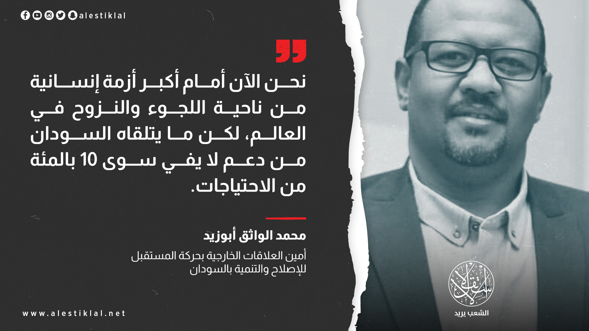 نحن الآن أمام أكبر أزمة إنسانية من ناحية اللجوء ومن ناحية النزوح في العالم، يعني ما يتلقاه السودان الآن من دعم إنساني لا يفي بـ 10بالمئة من الاحتياجات الإنسانية، أزمات أقل من هذه بكثير في العالم ينفتح عليها العالم.