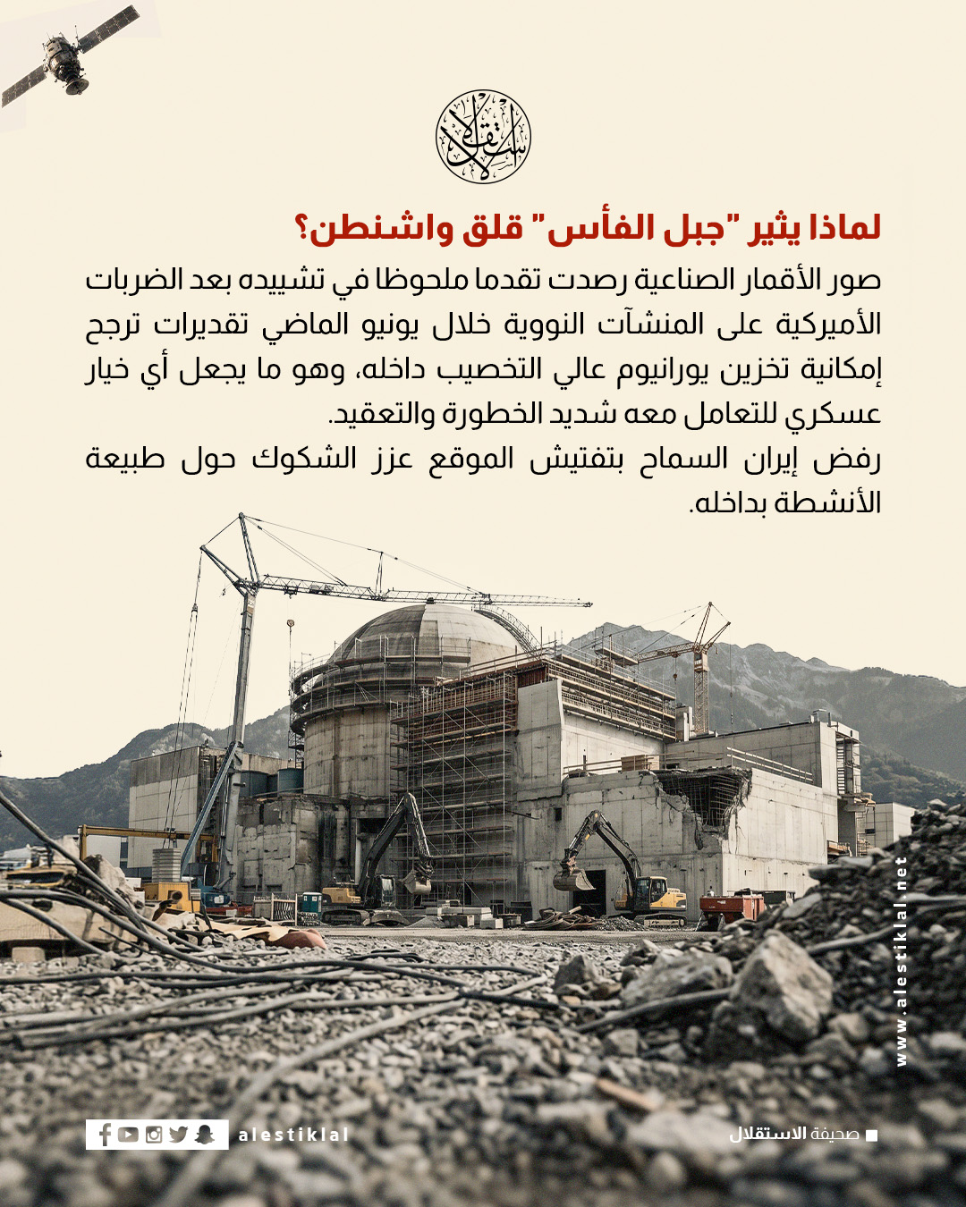 جبل الفأس.. موقع إيراني "غامض"يثير قلق أميركا (إنفوجراف)إنفوجرافأيضــــــــــــا"دائرة الحبيب".. إلى أين تقود النظام الإيراني في مرحلة ما بعد الحرب؟خبير أردني: إيران انتصرت داخليًا لكنها مطالبة بإعادة رسم سياساتها الإقليمية (خاص)كيف غيّرت حرب إيران مستقبل دول الخليج؟ (إنفوجراف)تمرد على الحرب أم خلاف مع هيغسيث؟ رحيل مفاجئ لوزير البحرية الأميركي وسط حصار إيرانبين الدمار والقدرة على التعافي.. ماذا ينتظر البرنامج النووي الإيراني؟بين الجيش النظامي و"الحرس الثوري".. من يحدد مسار الحرب في إيران؟منذ ١٩ ساعةإنفوجرافعلى ماذا نص اتفاق وقف إطلاق النار بين إسرائيل ولبنان؟ (إنفوجراف)السيادة في الخليج.. موجودة في السِلم مفقودة في الحرب (إنفوجراف)جبهة العمل في الأردن تغيّر اسمها وتحذف كلمة الإسلامي لماذا؟ (إنفوجراف)جبل الفأس.. موقع إيراني "غامض"يثير قلق أميركا (إنفوجراف)إيران"دائرة الحبيب".. إلى أين تقود النظام الإيراني في مرحلة ما بعد الحرب؟خبير أردني: إيران انتصرت داخليًا لكنها مطالبة بإعادة رسم سياساتها الإقليمية (خاص)بين الدمار والقدرة على التعافي.. ماذا ينتظر البرنامج النووي الإيراني؟كيف غيّرت حرب إيران مستقبل دول الخليج؟ (إنفوجراف)
