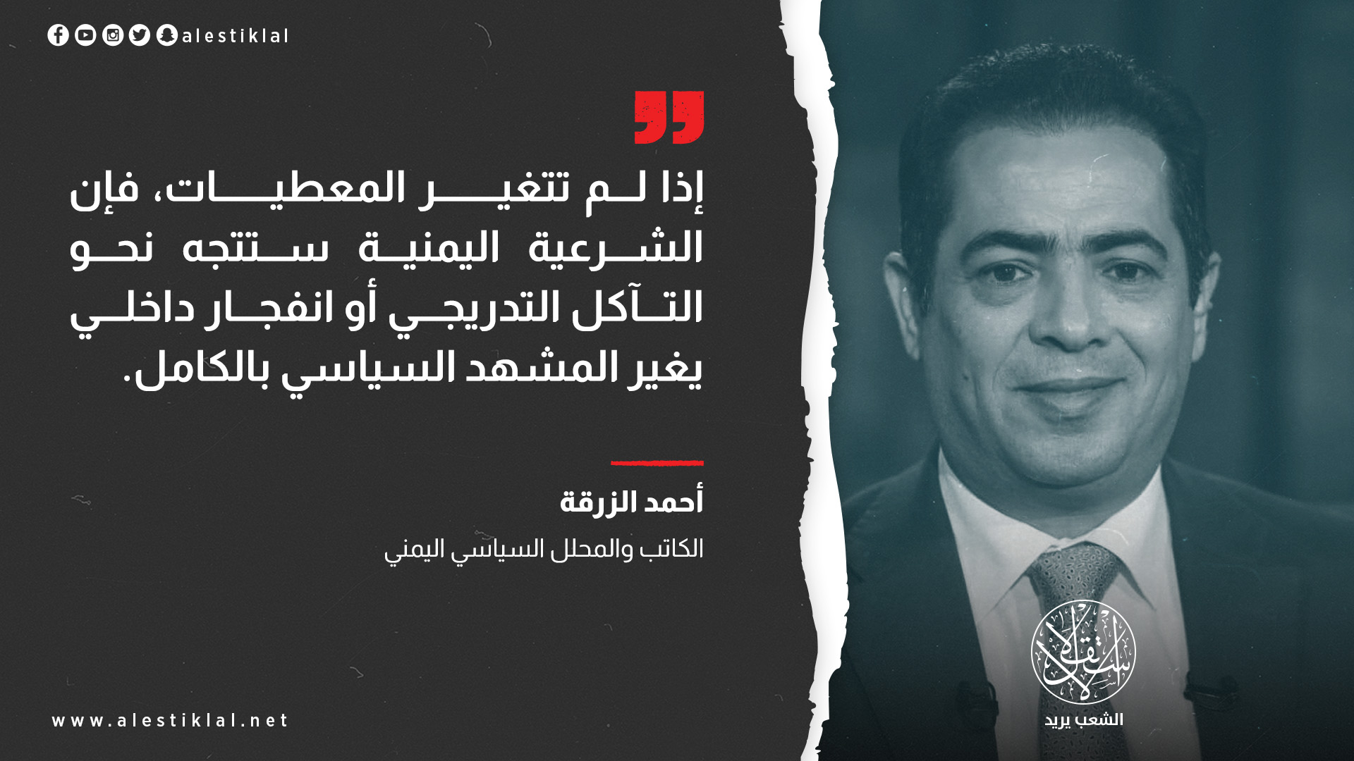 وعن مصير الشرعية، شدد الزرقة على أنه إذا استمر الوضع على حاله، فإن الشرعية تتجه إلى أحد خيارين أحلاهما مرّ: إما تآكل تدريجي حتى تتحول إلى شرعية شكلية بلا أدوات سيادة، أو انفجار داخلي يعيد خلط الأوراق عبر صدامات بين مراكز القوى.