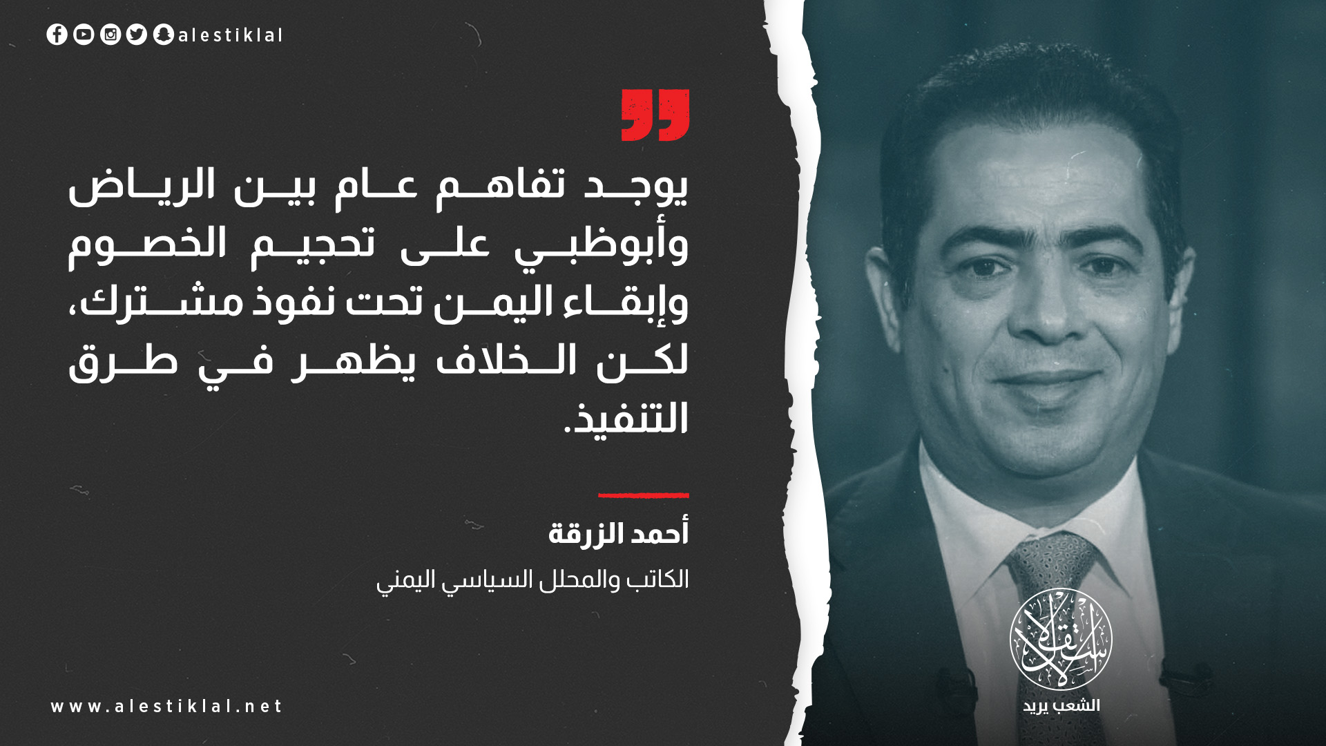 وحذّر الزرقة من استخدام الإمارات للملف اليمني كورقة ضغط إقليمي في حال حدوث تباين مع الرياض حول ملفات أخرى، مقدرا أن دفع السعودية إلى احتكاك عسكري مع المجلس الانتقالي في حضرموت أو المهرة يعني فتح جبهة جديدة قرب حدودها الشرقية، وهو سيناريو بالغ الخطورة.