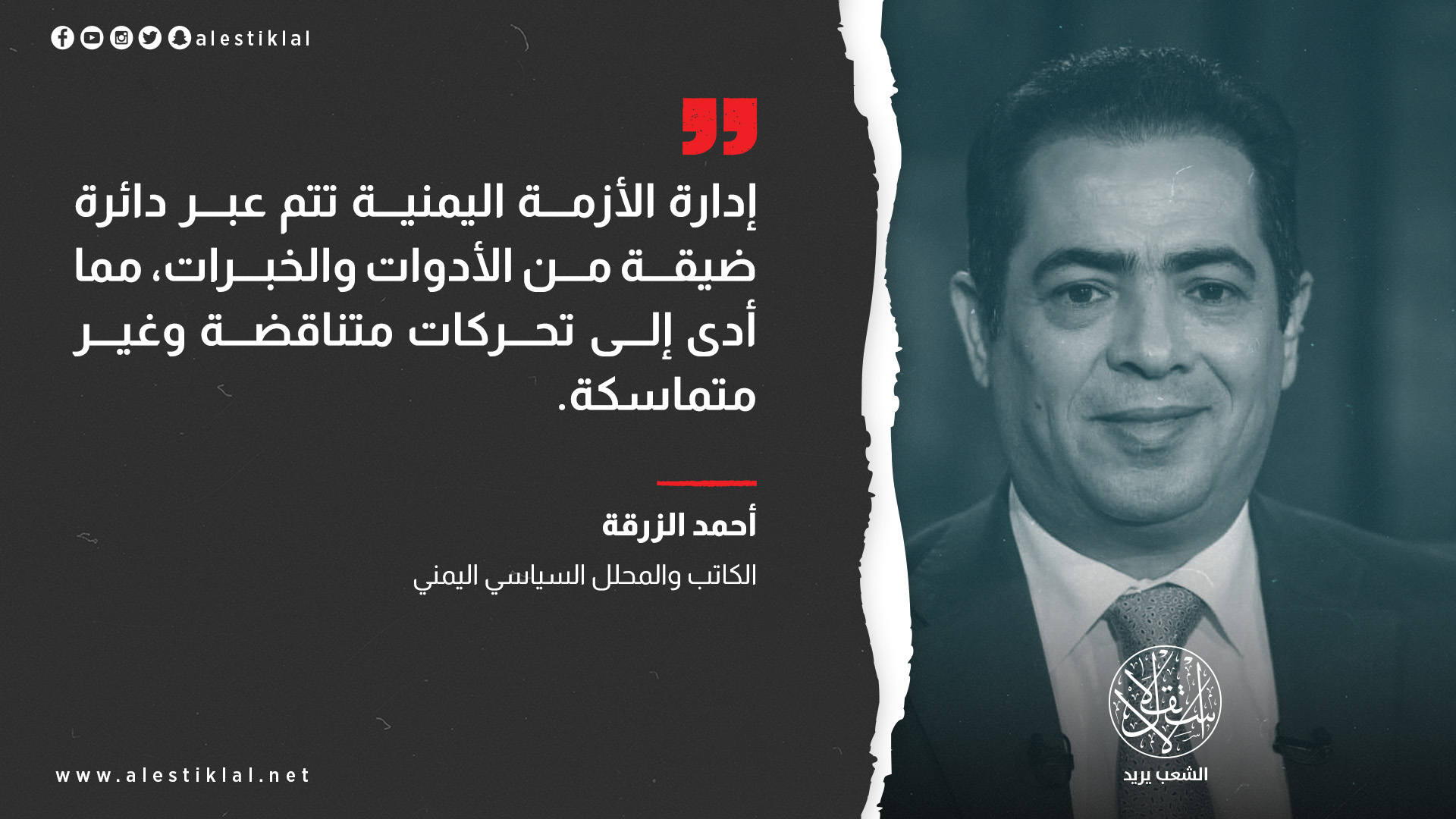 أُدير الملف اليمني عبر دائرة ضيقة من الأدوات والخبرات، ما أفضى إلى تحركات متناقضة: من جهة إضعاف حلفاء الشرعية وتجميد مؤسسات الدولة، ومن جهة أخرى السعي إلى تسوية ثنائية مع الحوثيين بمعزل عن الدولة اليمنية ومبدأ استعادة السلطة.