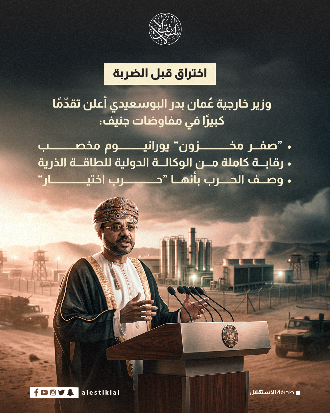 كيف كشف عُمان أن المفاوضات كانت خدعة الحرب؟ (إنفوجراف)إنفوجرافأيضــــــــــــابعد العدوان الأميركي الإسرائيلي.. كيف تحولت العقيدة الدفاعية الإيرانية؟أبرز القواعد الأميركية بالشرق الأوسط (إنفوجراف)أبرز المنشآت النووية الإيرانية (إنفوجراف)علي رضا أعرافي ينضم إلى مجلس القيادة الذي سيحكم إيران مؤقتا (إنفوجراف)دول حدودية.. لماذا قصفت إيران الخليج واستثنت تركيا وأذربيجان وأرمينيا؟خيار يوم القيامة .. ما احتمالات تفعيله في المواجهة بين واشنطن وطهران؟ (إنفوجراف)منذ ١٢ ساعةإنفوجرافأبرز القواعد الأميركية بالشرق الأوسط (إنفوجراف)السيناريوهات الإسرائيلية المستقبلية في الضفة الغربية (إنفوجراف)طريقة التمييز بين تمور فلسطين وتمور المستوطنات (إنفوجراف)كيف كشف عُمان أن المفاوضات كانت خدعة الحرب؟ (إنفوجراف)إيرانبعد العدوان الأميركي الإسرائيلي.. كيف تحولت العقيدة الدفاعية الإيرانية؟كيف كشف عُمان أن المفاوضات كانت خدعة الحرب؟ (إنفوجراف)حرب إيران.. هل تنجر دول الخليج للمعركة أم تتخلى عن القواعد الأميركية؟ترامب يشهر العصا النووية بوجه إيران.. الدبلوماسية أولًا والحرب خيار مطروح