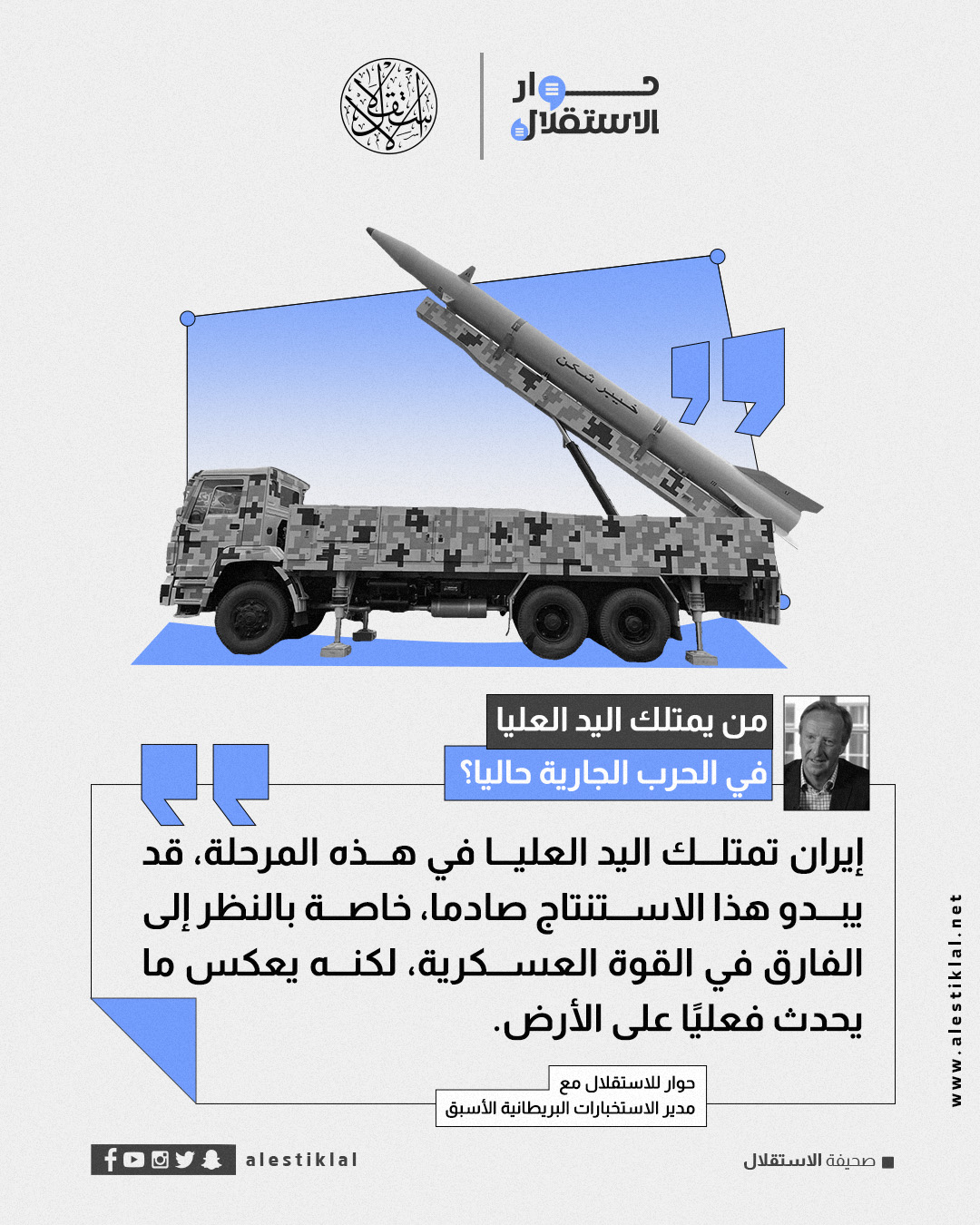 مدير الاستخبارات البريطانية الأسبق: إيران لها اليد العليا في المعركة الحالية (إنفوجراف)إنفوجرافأيضــــــــــــامن ثاد إلى باتريوت.. أباطرة الصواريخ الاعتراضية (إنفوجراف)كيف هزّت الحرب ثقة المستثمرين في قلب الخليج؟ (إنفوجراف)في مضيق هرمز.. هل تفاجئ إيران واشنطن بصاروخ مضاد للسفن؟ضربة جوية على قاعدة الأمير سلطان.. ماذا تعني؟ (إنفوحراف)ضربة جوية على قاعدة الأمير سلطان.. ماذا تعني؟ (إنفوحراف)من ثاد إلى باتريوت.. أباطرة الصواريخ الاعتراضية (إنفوجراف)منذ ٤ أيامإنفوجرافماذا يعني إقرار قانون إعدام الأسرى الفلسطينيين؟ (إنفوجراف)بعدما أعلن ترامب تدميره.. أهمية جسر B1 في ايران (إنفوجراف)كيف هزّت الحرب ثقة المستثمرين في قلب الخليج؟ (إنفوجراف)شبكة نيولاينز شبكة تطبيع تجمع باحثين عربا وإسرائيليين (إنفوجراف)إيرانكيف هزّت الحرب ثقة المستثمرين في قلب الخليج؟ (إنفوجراف)بين هيمنة الأصوليين وتهميش الإصلاحيين.. مستقبل الخريطة السياسية في إيرانالرموز الدينية تشعل حرب إيران وأميركا وإسرائيل في الشرق الأوسط (فيديو)من ثاد إلى باتريوت.. أباطرة الصواريخ الاعتراضية (إنفوجراف)