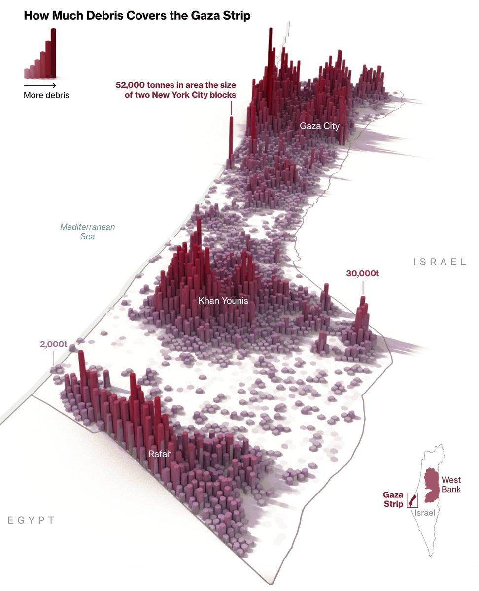 The Israeli airstrikes have left behind over 42 million tons of debris.