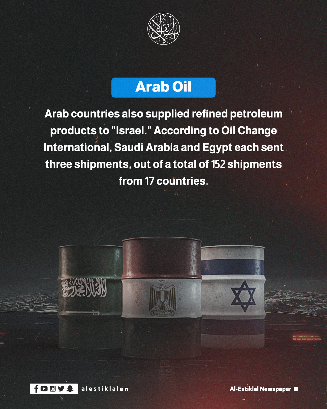 25 Countries Supplied 'Israel' with Oil During the War on Gaza | InfographicInfographAlsoAs the Battle Over Education Intensifies in Palestine, Is the Crisis Over Pay or a Bid to Recast Public Consciousness?The Syrian Rama Duwaji: New York’s First Lady | InfographicHow the Gaza War Psychologically Traumatized Israeli Soldiers and OfficersHarrowing Testimonies of Israeli Occupation Crimes Against Detainees | InfographicHarrowing Testimonies of Israeli Occupation Crimes Against Detainees | InfographicHicham Harb: A Palestinian Fighter Abbas Is Poised to Hand Over to France as a ‘Token of Gratitude’6 hours ago Oil Change International: 25 countries, including Saudi Arabia and Egypt, have supplied "Israel" with oil and fuel. Infograph25 Countries Supplied 'Israel' with Oil During the War on Gaza | InfographicThe Syrian Rama Duwaji: New York’s First Lady | InfographicHarrowing Testimonies of Israeli Occupation Crimes Against Detainees | InfographicPalestineHow the Gaza War Psychologically Traumatized Israeli Soldiers and OfficersGazans on the Move: Inside the Plan to Send Them to South Africa, Malaysia, and IndonesiaAs the Battle Over Education Intensifies in Palestine, Is the Crisis Over Pay or a Bid to Recast Public Consciousness?Hicham Harb: A Palestinian Fighter Abbas Is Poised to Hand Over to France as a ‘Token of Gratitude’