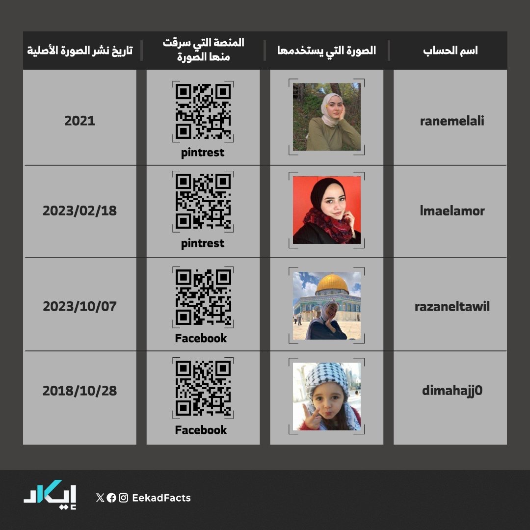 The operators of this network used stolen photos of stylish young women taken from across the internet to draw attention and boost engagement, while the accounts relied on a misleading discourse that adopted the occupation’s narrative on the resistance and on aid.