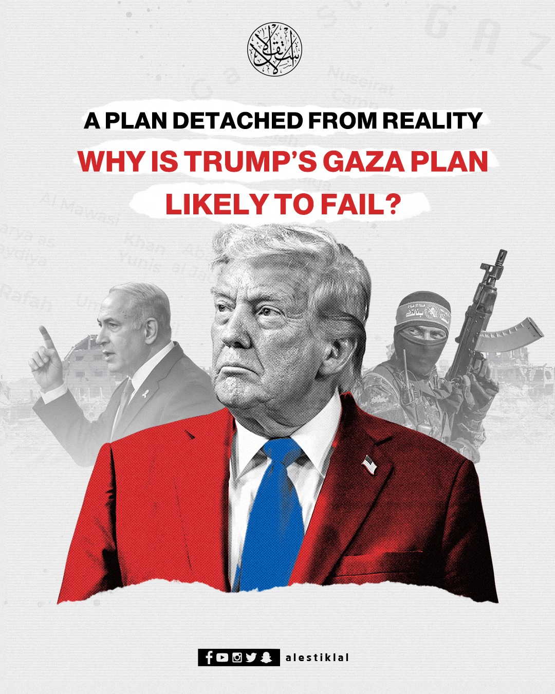 A Plan Detached From Reality: Why Is Trump’s Gaza Plan Likely to Fail? | InfographicInfographAlsoReality or Illusion: Why Netanyahu Is Seeking To Form a New Geopolitical AllianceHow Shipping Giant MSC Became Entangled in Settlement Trade | InfographicInside the Combative Carlson–Huckabee Interview: How Religion Shapes Washington’s Stance on ‘Israel’From Clearance Revenues to Student Dropouts: the Financial Crisis Sweeps Away Palestinian EducationHow Is Netanyahu and the Zionist Media Elite Pushing Trump Toward the Quagmire of War With Iran?Boycott in Ramadan: How to Tell Palestinian Dates from Settler Ones2 hours ago Responsible Statecraft magazine argues that the failure of Trump’s Gaza plan is not a theoretical possibility, but a near-certain outcome driven by clear and compounding reasons. What are they? InfographA Plan Detached From Reality: Why Is Trump’s Gaza Plan Likely to Fail? | InfographicHow Shipping Giant MSC Became Entangled in Settlement Trade | InfographicA New-Generation Drone: What Are the Key Features of the Anka-3 in the Turkish Air Force?PalestineThe Occupation Ignites a Battle for Control of al-Aqsa and Jerusalem During Ramadan: Has the Purge Begun?How Is Netanyahu and the Zionist Media Elite Pushing Trump Toward the Quagmire of War With Iran?From Clearance Revenues to Student Dropouts: the Financial Crisis Sweeps Away Palestinian EducationCriminalizing Support for the Resistance: Jordan’s Next Step?