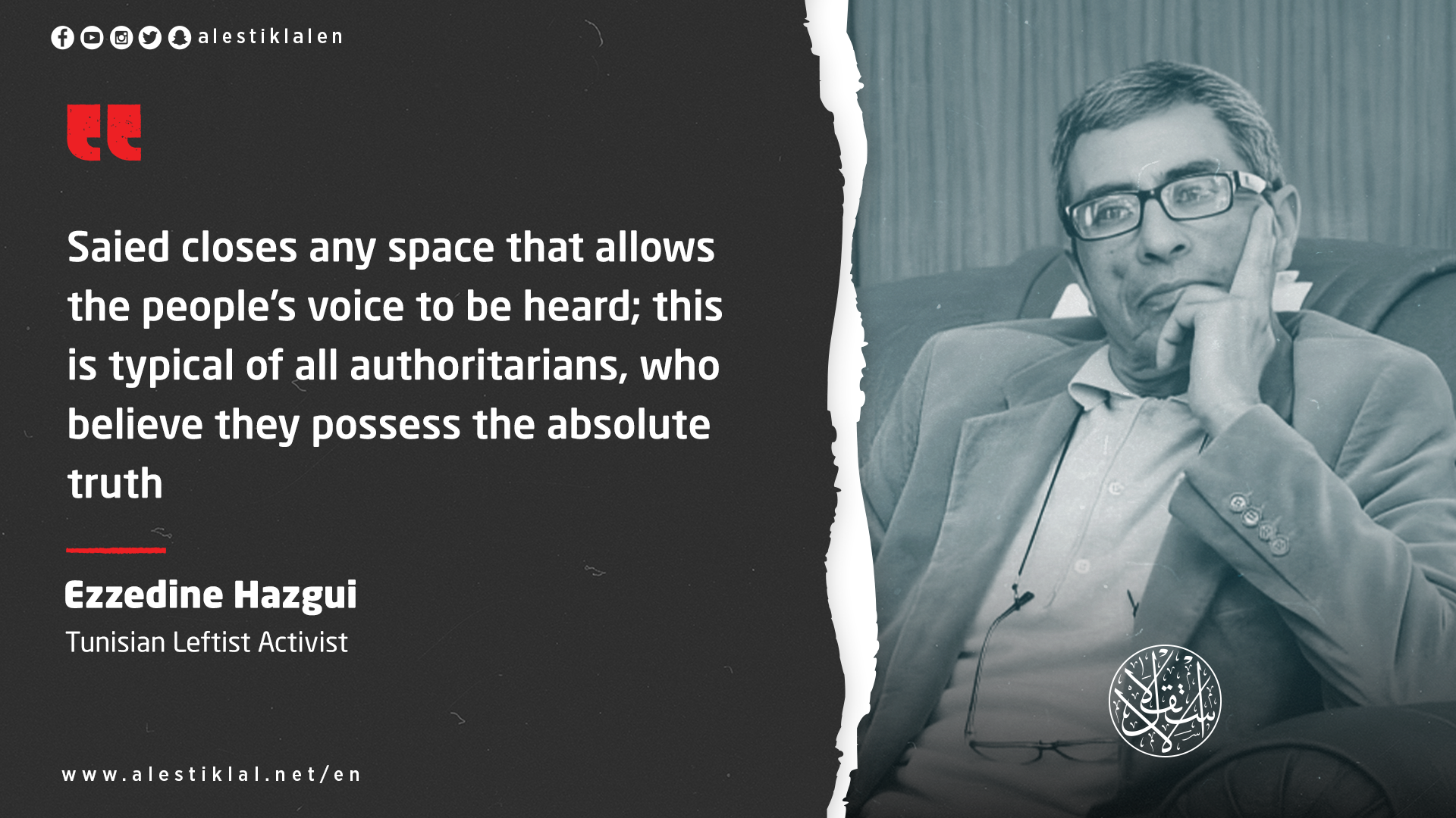 In an interview with Al-Estiklal, Hazgui said Tunisia’s young generation embodies the spirit of collective action that President Kais Saied seeks to suppress, as do all autocrats who see themselves as singular leaders, insisting that the age of one-man rule is over. He added that Saied’s governing mindset harks back to the Middle Ages, reflected most starkly in the country’s prison conditions.