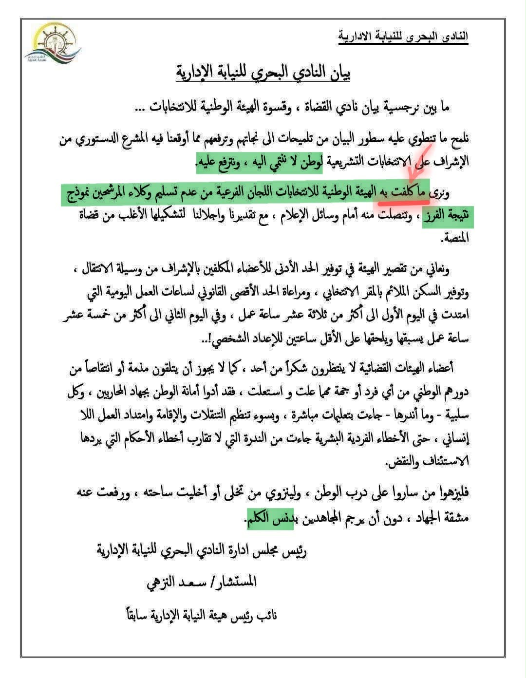 “This statement signifies that the Administrative Prosecution has disclaimed any responsibility for electoral integrity, placing direct accountability on the National Elections Authority as the constitutionally mandated body managing the process,” a human rights lawyer told Al-Estiklal.
