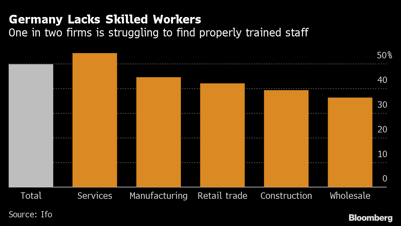 Germany, the largest market in Europe, is currently suffering from a high level of labor shortage, threatening half of the companies across the economy, according to a company survey published by the Munich-based ifo Institute.