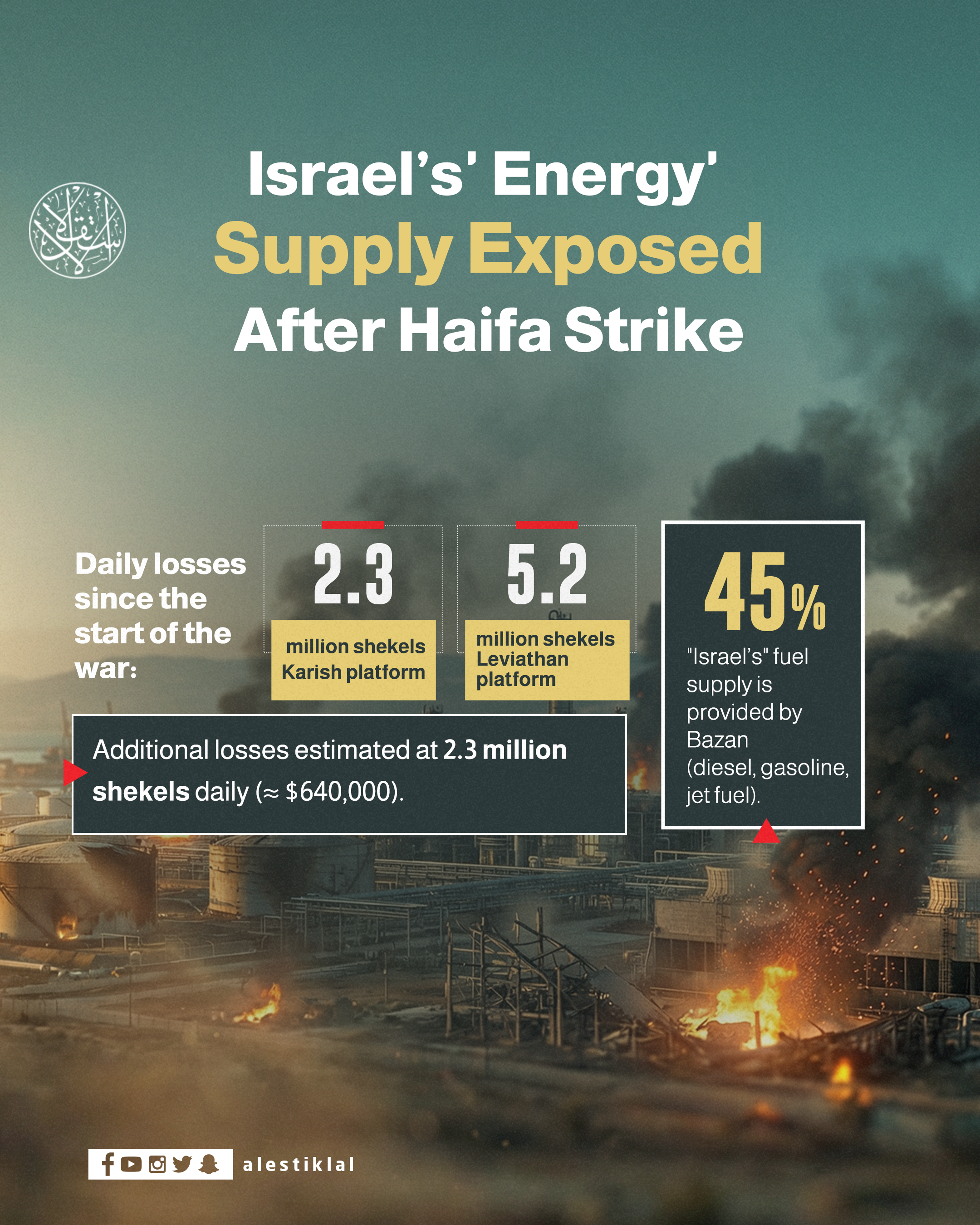 'Israel’s' Energy Supply Exposed After Haifa Strike | InfographicInfographAlsoFrom Hormuz to Bab Al-Mandab: Is the Global Economy Entering a Shock Phase?Mohammad Bagher Ghalibaf: Iran’s Wartime Parliament Speaker and Washington’s Backchannel for NegotiationDefense Deals in Wartime: Why Is the Gulf Knocking on Ukraine’s Door?Inside New Lines Institute: How Ahmed Alwani Built a Network Linking Arab Researchers and an Israeli ConscriptBetween Washington and Tehran: Is Africa Becoming a Proxy Warfare Zone?‘Nuclear Fatwa Is Dead’: What If Iran Withdraws from the NPT2 days ago The Israeli newspaper Calcalist reported that damage to Bazan facilities in Haifa revealed critical vulnerabilities in the energy sector. Infograph'Israel’s' Energy Supply Exposed After Haifa Strike | InfographicPalestine'Israel’s' Energy Supply Exposed After Haifa Strike | InfographicInside New Lines Institute: How Ahmed Alwani Built a Network Linking Arab Researchers and an Israeli ConscriptIranFrom Hormuz to Bab Al-Mandab: Is the Global Economy Entering a Shock Phase?Mohammad Bagher Ghalibaf: Iran’s Wartime Parliament Speaker and Washington’s Backchannel for NegotiationHow AI Has Become a Key Weapon in US-Israeli Attacks on IranBetween Washington and Tehran: Is Africa Becoming a Proxy Warfare Zone?