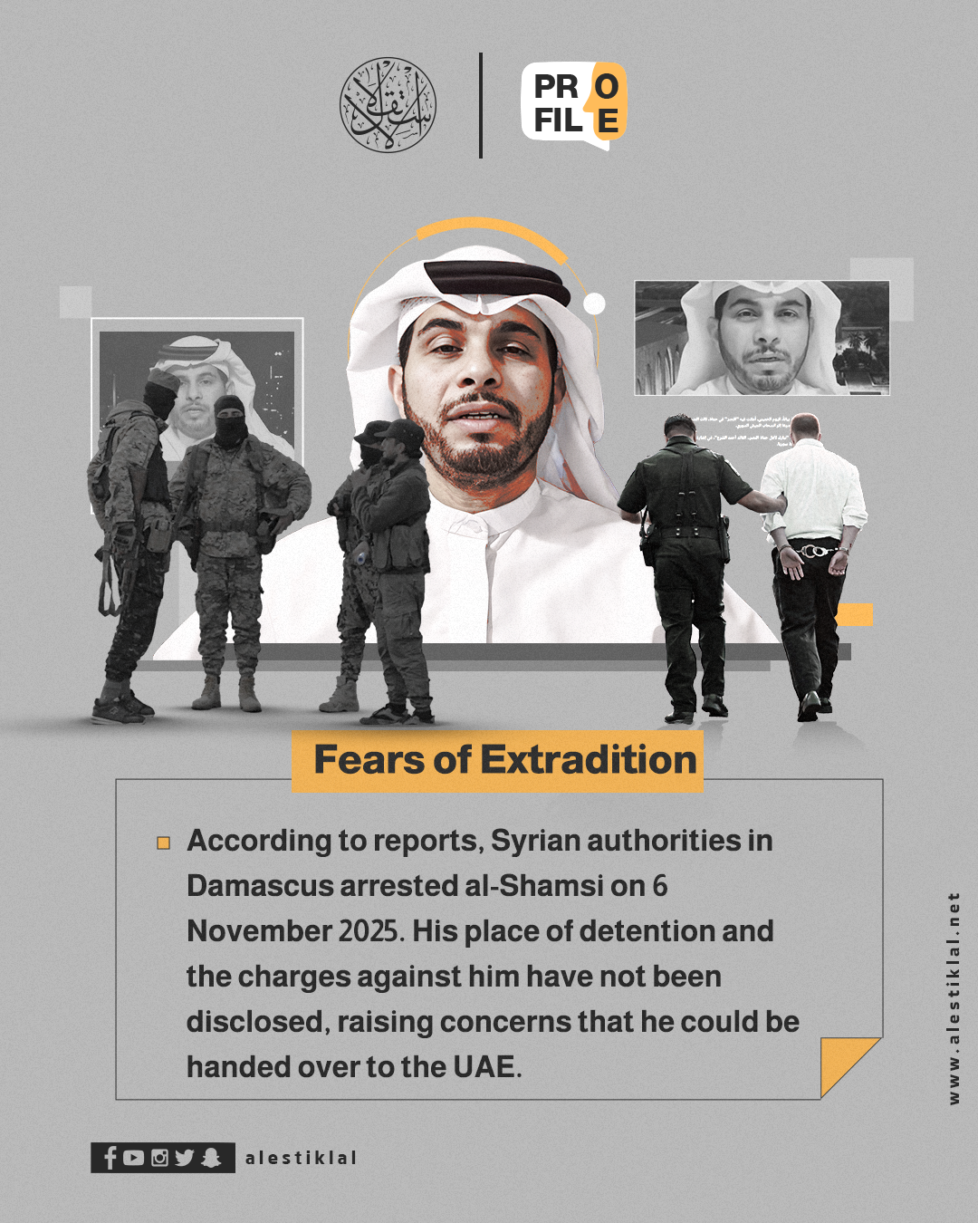 Rising fears over the extradition of Emirati dissident Jassem al‑Shamsi to Abu Dhabi following his disappearance in Syria.