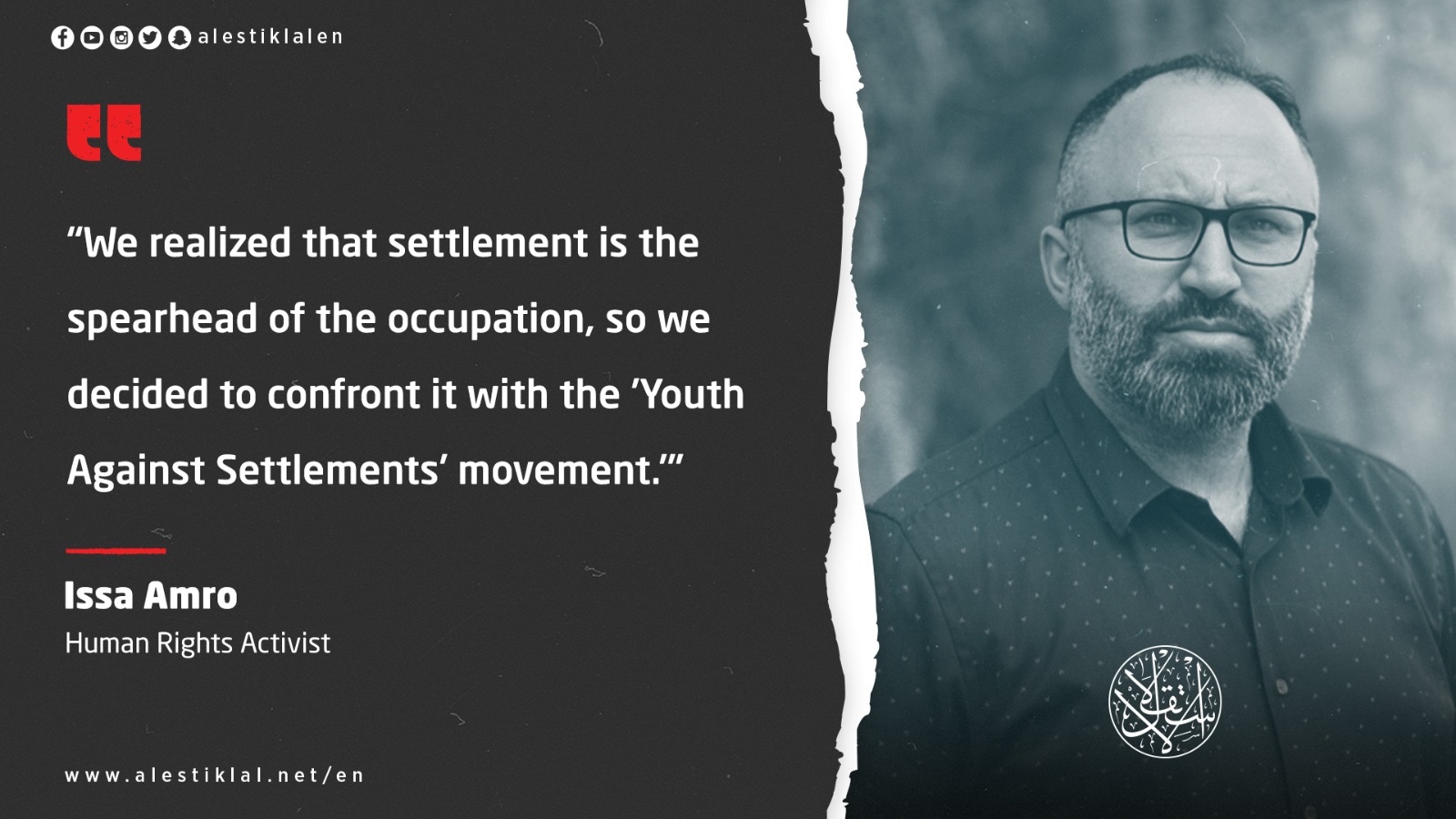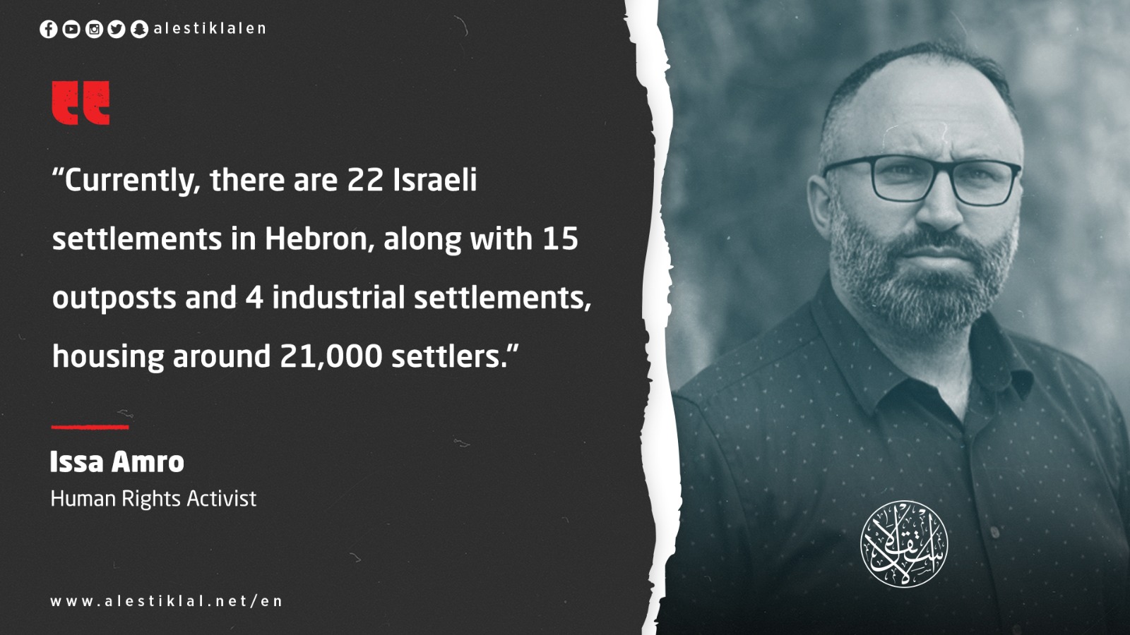 Palestinian journalist, human rights activist, and founder of Youth Against Settlements, Issa Amro, stated that the city of Hebron (al-Khalil), in the southern West Bank, is currently suffering from Israeli settlement aggression more than ever before.