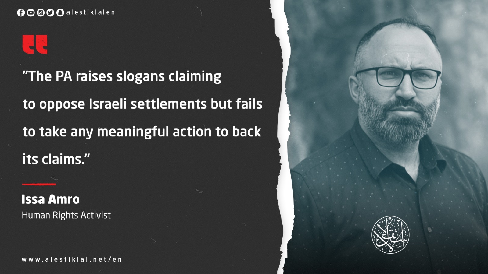Personally, I have been arrested multiple times and placed on the blacklist. Sadly, the Palestinian Authority raises slogans claiming to oppose settlements and stand with Palestinian citizens in their struggle against them, but in reality, it takes no action to support these slogans.