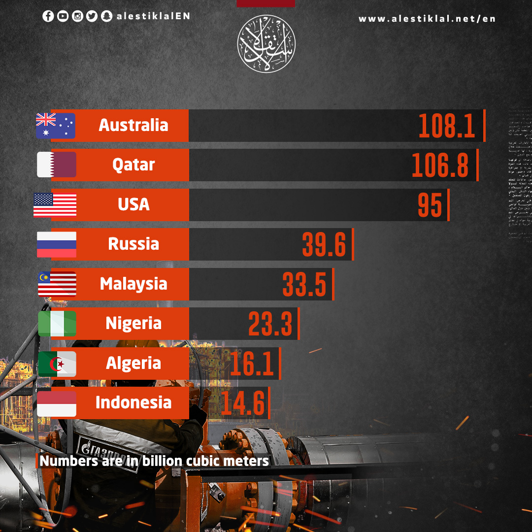 The 8 Largest Natural Gas Exporters in the World [Infographics]InfographAlsoFrom Blocking to Information Flooding: The UAE’s Tools for Controlling the Digital SpaceDespite U.S. Pressure, Why Are Iraq’s Kurds Staying Out of the War on Iran?Pezeshkian Apologizes to Neighboring States: Why Do Observers Doubt Iran’s Pledge?How the Conflict With Iran Turned Into a Windfall for American Defense ContractorsLicense to Kill: How Ben-Gvir Is Arming Jerusalem Against PalestiniansHow the United States Mobilized Its Forces for an End-Times War in Iran4 years agoInfographMediaInternationalHow the United States Mobilized Its Forces for an End-Times War in IranThe Kurdish Card: Can US and Israeli Plans Strike at Iran from Within?License to Kill: How Ben-Gvir Is Arming Jerusalem Against PalestiniansHow the Conflict With Iran Turned Into a Windfall for American Defense ContractorsTagsusaqataraustralianatural gas
