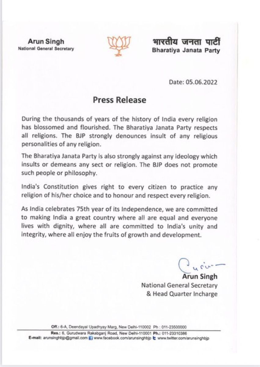 Meanwhile, the BJP claimed in a statement that it respects all religions and strongly opposes any ideology that insults or degrades any religion.